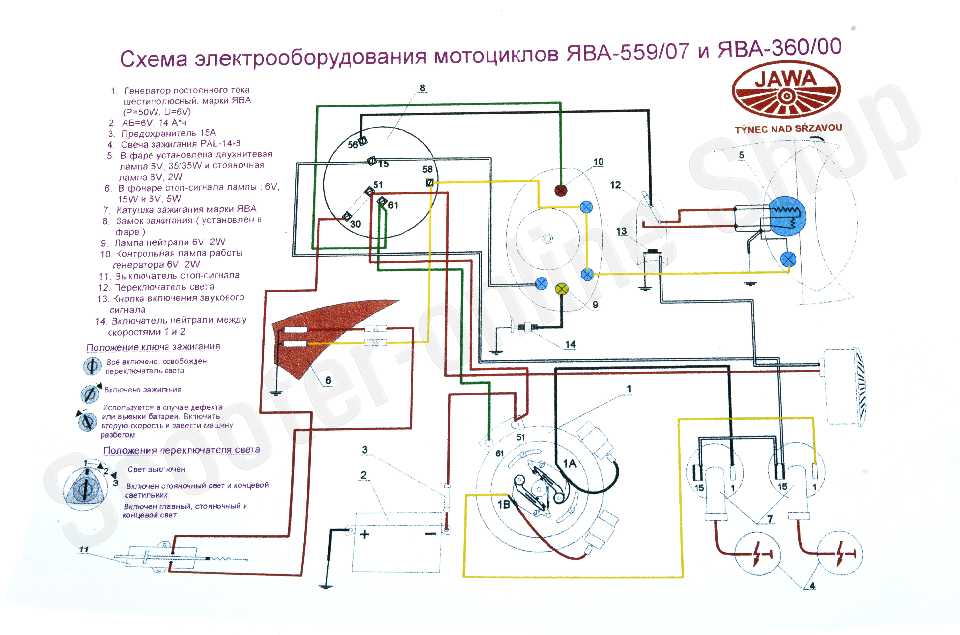 Схема электрооборудования мотоцикла "Ява" 559/07. 360/00" (6v)