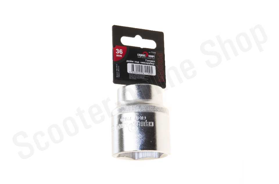 Головка (6 граней) 36мм. Изготовлена из высокопрочной стали CRV 40, твердость 38-42 HRC.