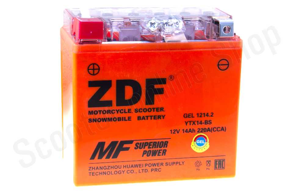 Аккумулятор 1214.2 YTX14-BS ZDF GEL Orange 150х145х85 (прямая)