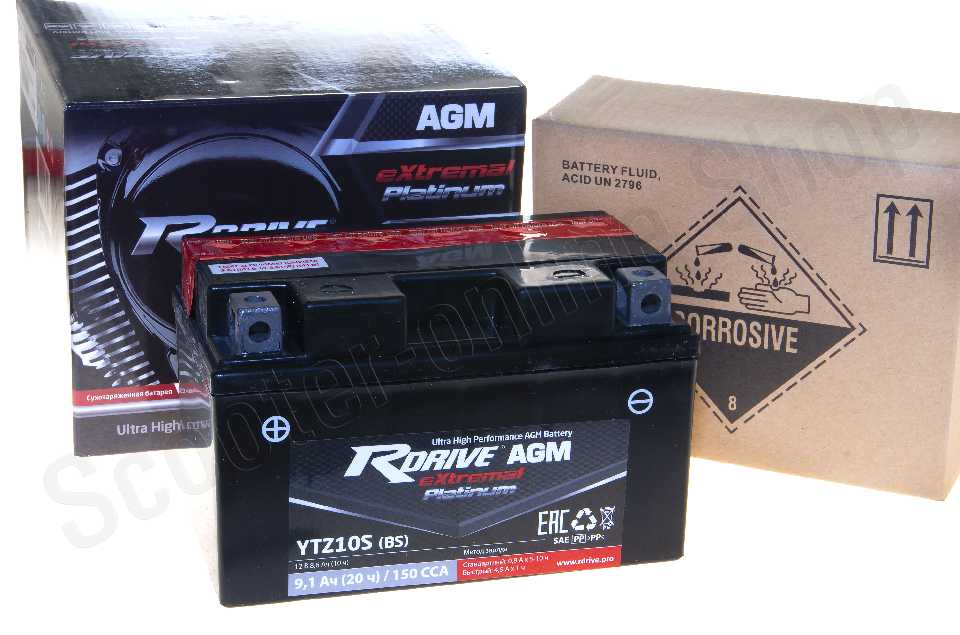 Аккумулятор RDRIVE RDRIVE-YTZ10S-BS 12В 8,6Ач 170CCA 151x87x94 мм Прямая (+-)