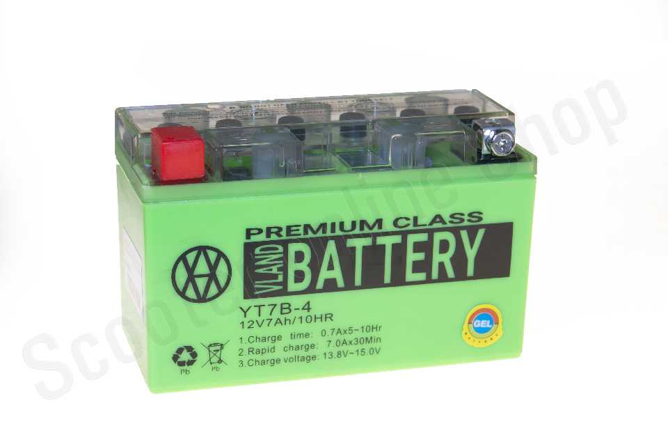 АКБ  GEL  12V 7A  150-65-94мм  YT7B-4  узкий  "VLAND"  (06.2023, зеленый) фото фотография изображение картинка