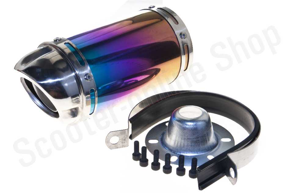 Глушитель тюнинг 170*100мм, креп. d-78мм нержавейка, короткий, радуга