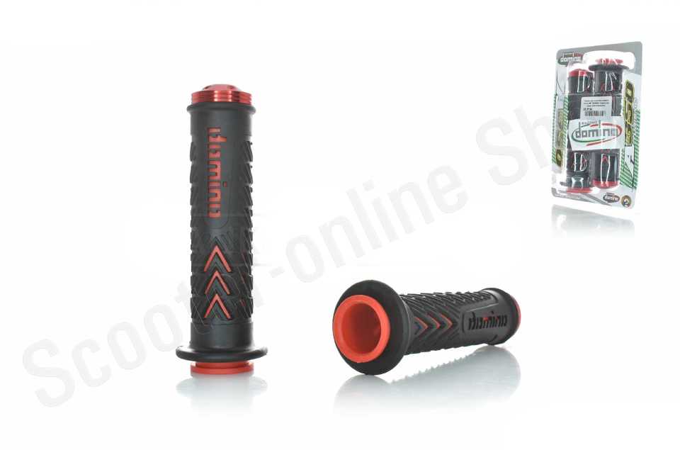 Грипсы (ручки руля)  универсальные  #8  "DOMINO"  (черно-красные, CNC отбойники)