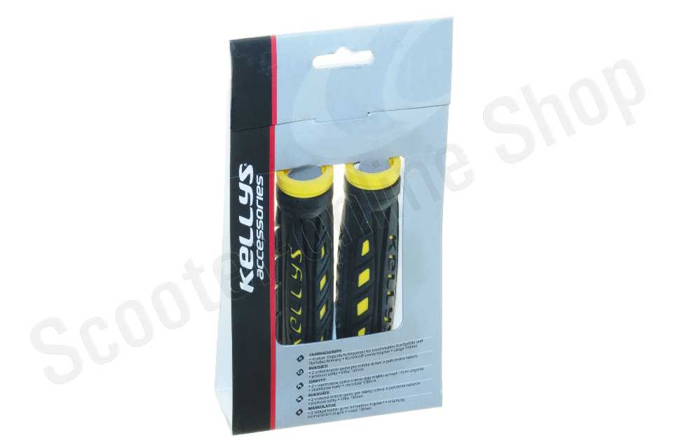 Грипсы KELLYS  Exbone 2DENSITY, резиновые, с заглушками, длина 130мм, цвет: чёрно-желтые фото фотография изображение картинка